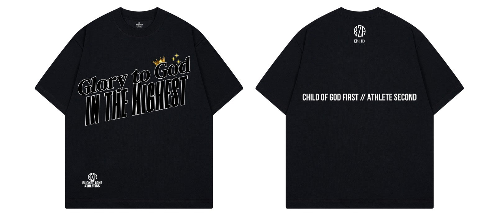 On the front, your faith stands bold with “Glory to God in the Highest”, framed by the Bucket Zone Athletics logo. On the back, the message hits deeper: “Child of God first || Athlete second”. Because before the wins, before the grind, your identity is rooted in purpose.